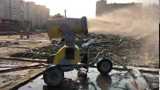 Пушка пылеподавления Hydraram является абсолютно необходимым прибором на строительной площадке при демонтаже зданий и при работах по ресайклингу. Эта пушка создает водяной туман посредством огромного числа сопел, на которые под высоким давлением подается вода. Это водяной туман связывается с мелкими частицами пыли, которые становятся тяжелее и падают на землю. Воздух таким образом очищается.